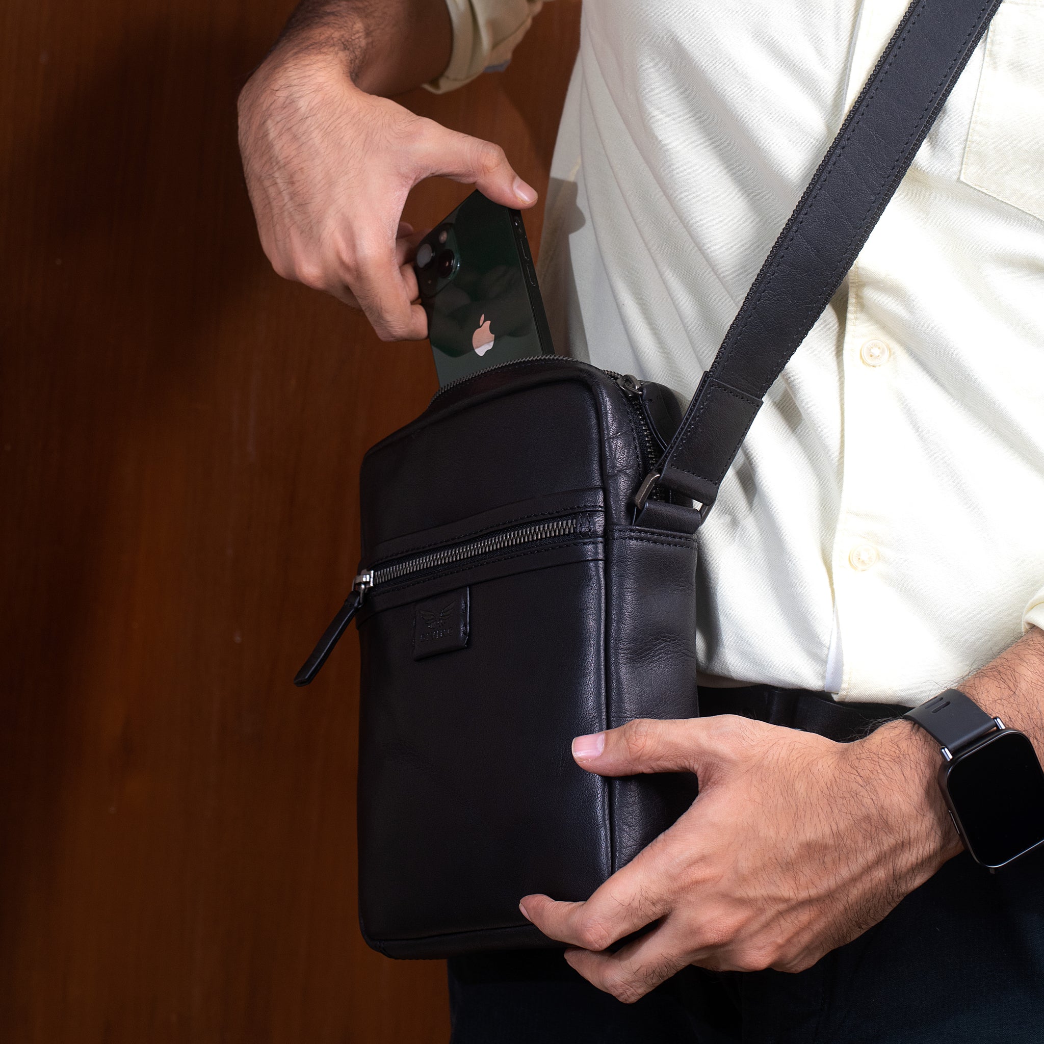 From zippered pockets to interior compartments, every element is thoughtfully placed for security and ease ensuring your iPad Mini, phone, and essentials stay protected, organized, and ready whenever you are.