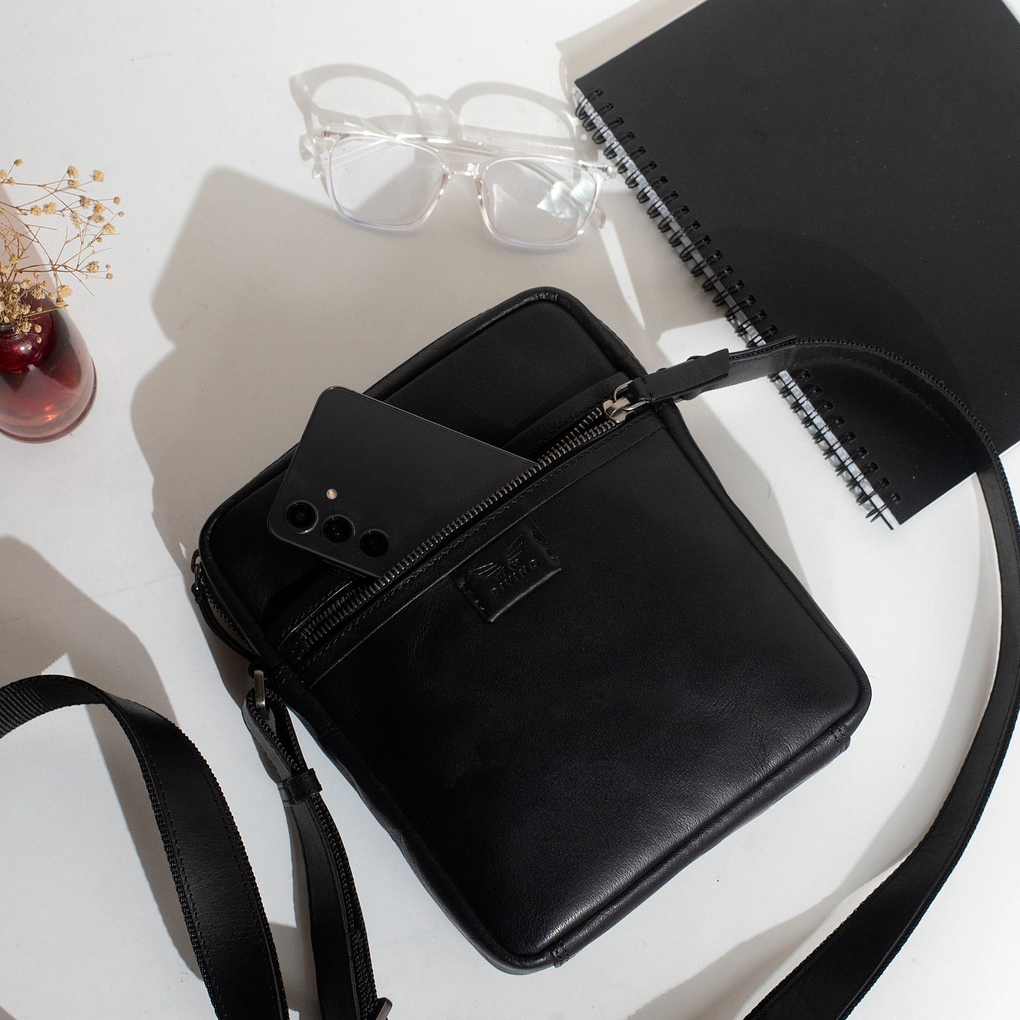 Astra Sling Bags are crafted from premium top-grain leather, each piece bearing the unique texture and tone of genuine leather. To keep your bag looking its best:
