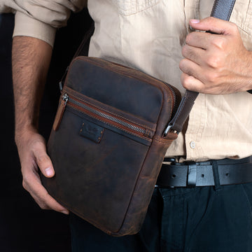 Astra Sling Bags are crafted from premium top-grain leather, each piece bearing the unique texture and tone of genuine leather. To keep your bag looking its best: