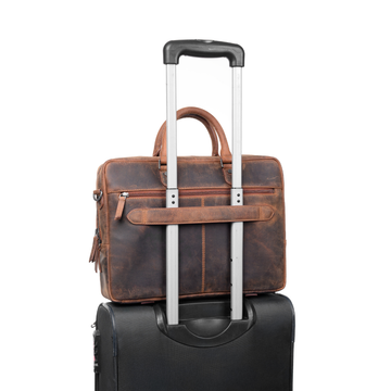 The rear trolley sleeve slides securely over your suitcase handle, turning your briefcase into a hands-free travel companion—perfectly suited for journeys near or far.